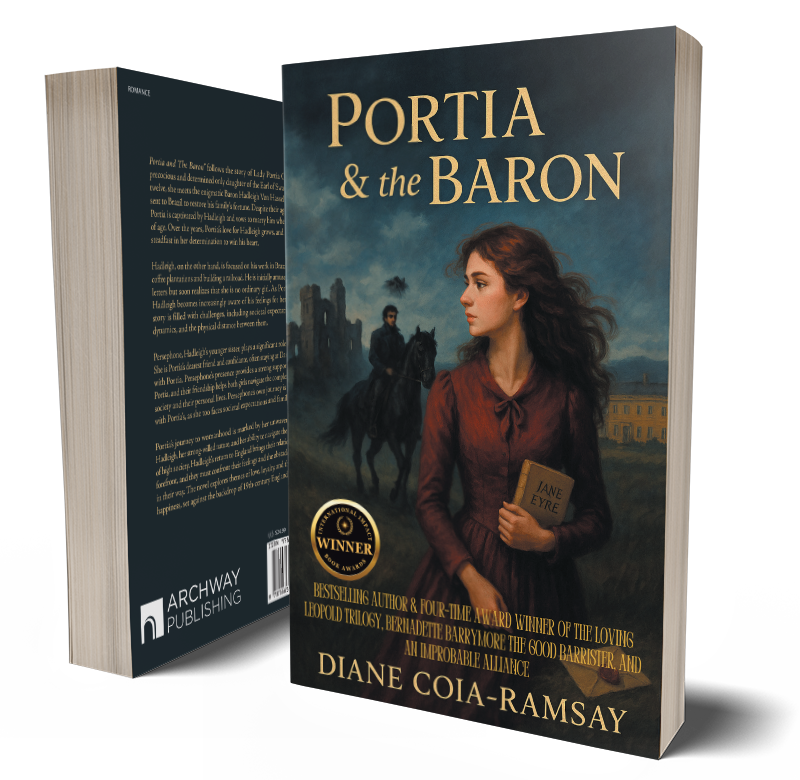 Portia and The Baron” follows the story of Lady Portia Cheslyn, the precocious and determined only daughter of the Earl of Swarthmore. At twelve, she meets the enigmatic Baron Hadleigh Von Hasselberg, who is sent to Brazil to restore his family’s fortune. Despite their age difference, Portia is captivated by Hadleigh and vows to marry him when she comes of age. Over the years, Portia’s love for Hadleigh grows, and she remains steadfast in her determination to win his heart.